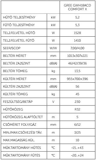 A Gree GWH18ACDXF Comfort X Inverteres Split klíma fontos tulajdonságai: